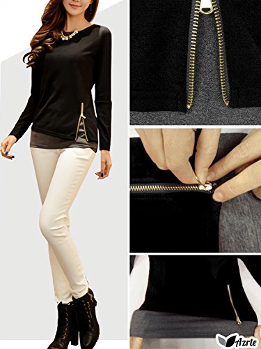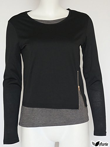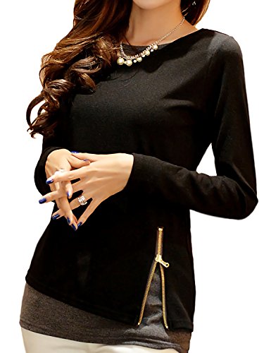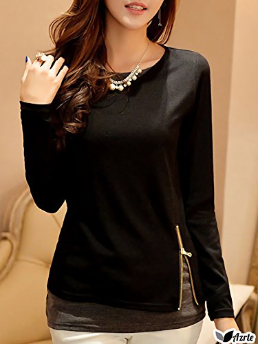 [アズルテ] チュニック カットソー 長袖 レディース ファッション 重ね着 風 M ~ 4XL 相当 大きいサイズ 2XL ブラック