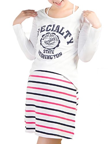 [アズルテ] 2点 セット 授乳口 ワンピース ボーダー 授乳服 長袖 Tシャツ キャミ セット L ~ XXL マタニティ L ホワイト