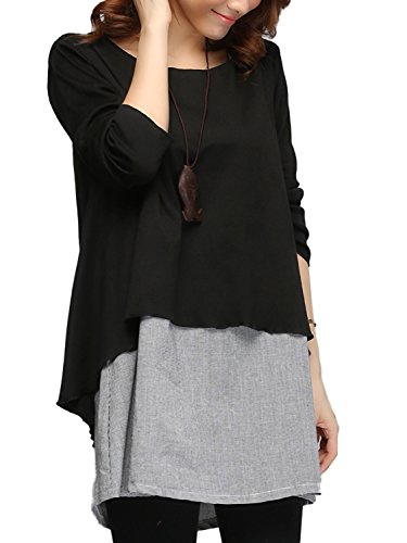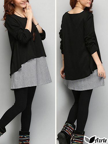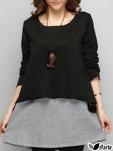 Azrte(アズルテ) チュニック ワンピース レディース 千鳥格子 重ね着風 マタニティ ウェア Aライン ワンピ XL ブラック