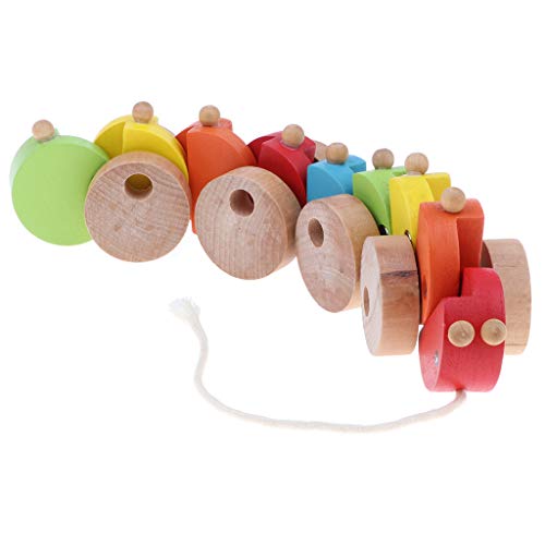 B Baosity 木製 プル玩具 キャタピラーおもちゃ プッシュプル玩具 子供 歩行学習おもちゃ 教育玩具