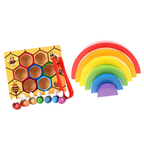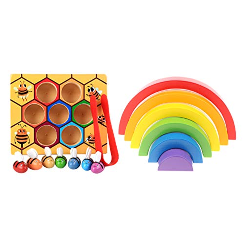 - モンテッソーリ木製6色スタッキング虹ブロックセット&ビークリップボックスキッズ教育玩具