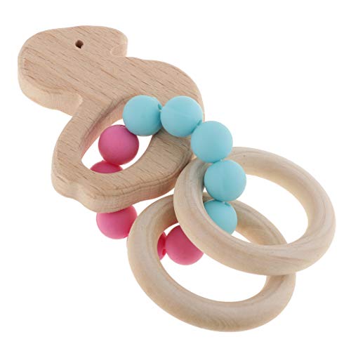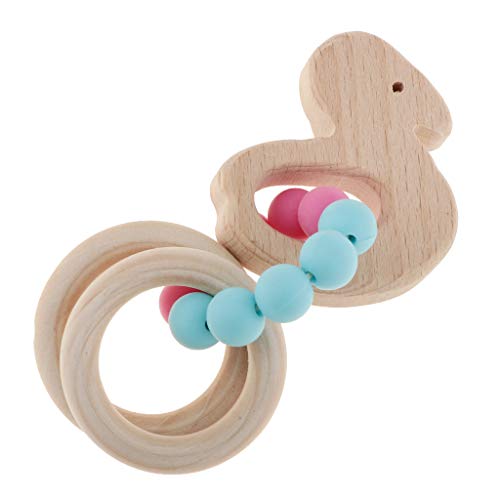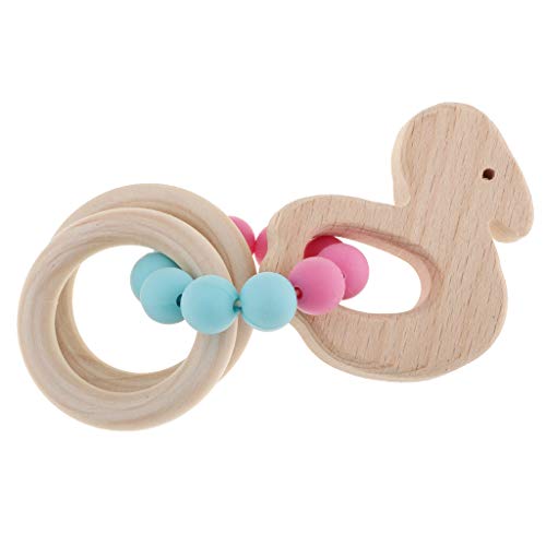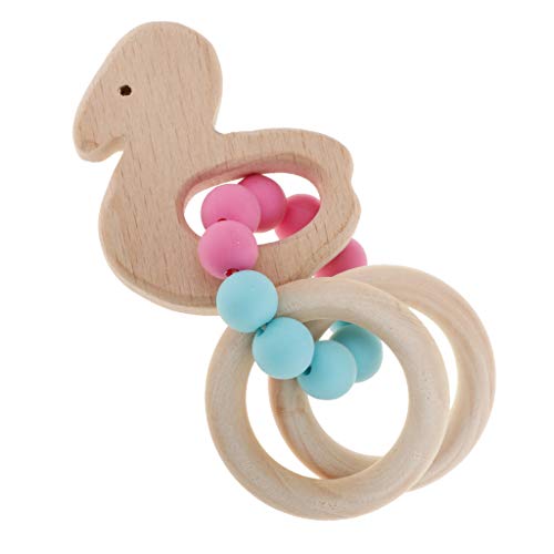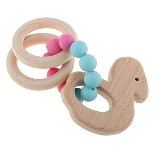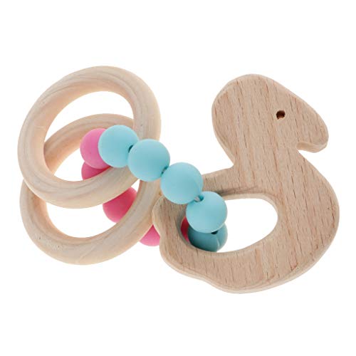 B Baosity 赤ちゃん 幼児 子供 歯がため リング 木製 おもちゃ 玩具 可愛い 全5種類 - 白鳥