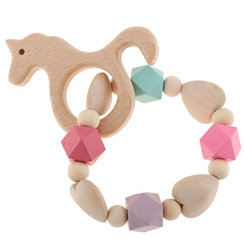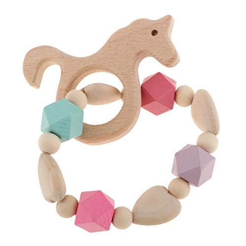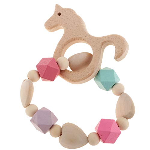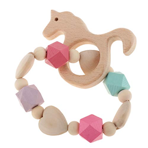 B Baosity ベビー 木製 ブレスレット 歯がため ビーズ おもちゃん 全6種類 - スタイル2馬