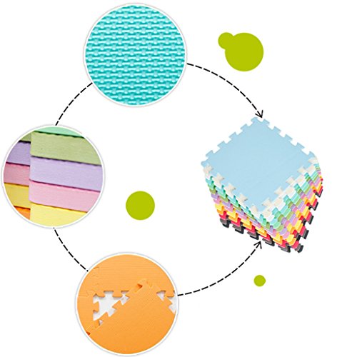 - この安全なプレイマットは、子供が色を学ぶのを助ける、鮮やかな画像を含む9つのインターロックパズルタイルを特徴としています。
