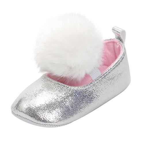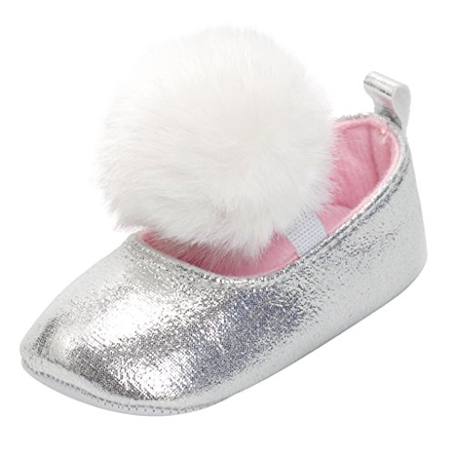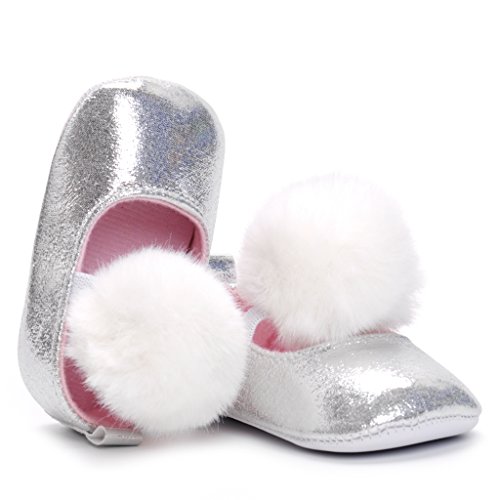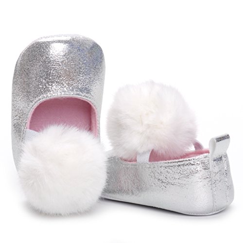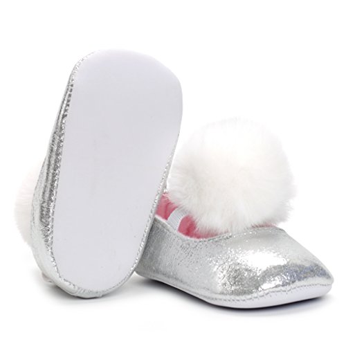 B Blesiya ベビー靴 ルームシューズ トレーニングシューズ ベビーシューズ 可愛い 白いボールが付 誕生日祝い ギフト 全3サイズ - 銀, 13cm