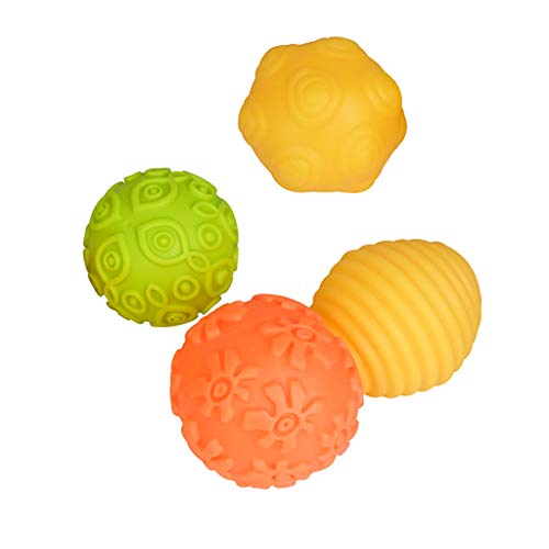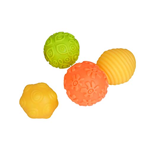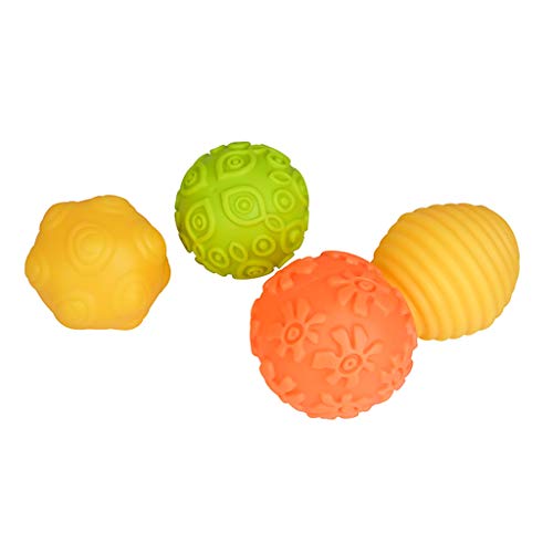 - 明るい色と興味深いテクスチャは、この楽しいボールが想像力を設定します。