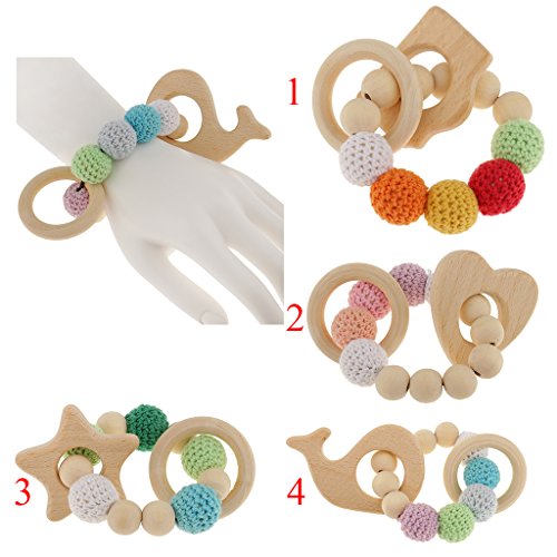 B Blesiya 全4種 編みビーズ ブレスレット ティースリング 赤ちゃん 哺乳おもちゃ つかむ鍛え - #1