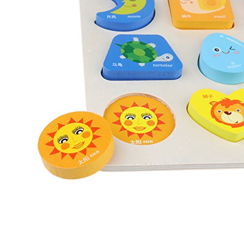 B Blesiya 3色選ぶ パズルボード 動物/幾何図形/車ブロック マッチングブロック 木のおもちゃ スタッキングゲーム 子ども教育玩具 - ジオメトリブロック