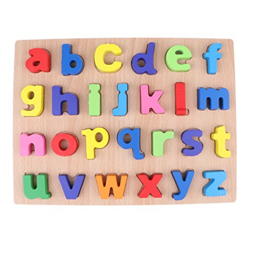 B Blesiya マッチングブロック 木のおもちゃ 数字/アルファベットブロック はめこみ パズル 幼児 子供 教育玩具 全4カラー - 小文字ブロック