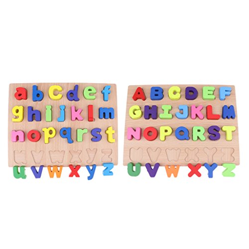 - 2木製の大文字と小文字の文字ブロックを設定する赤ちゃんの子供の幼児の色、形、文字の認識のためのアルファベットボードのおもちゃのゲーム