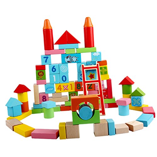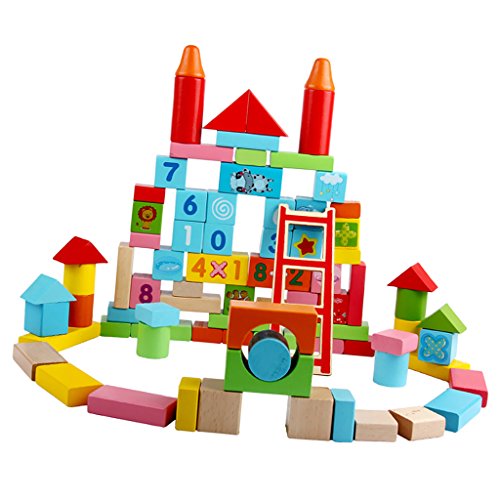 B Blesiya 約100pc 子供 建設おもちゃ 木製 ビルディングブロック 積み木 木製ブロック レンガ 創造的な セット