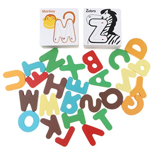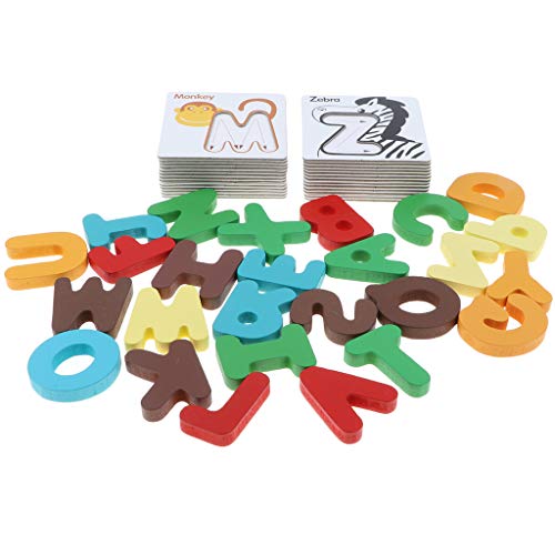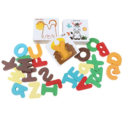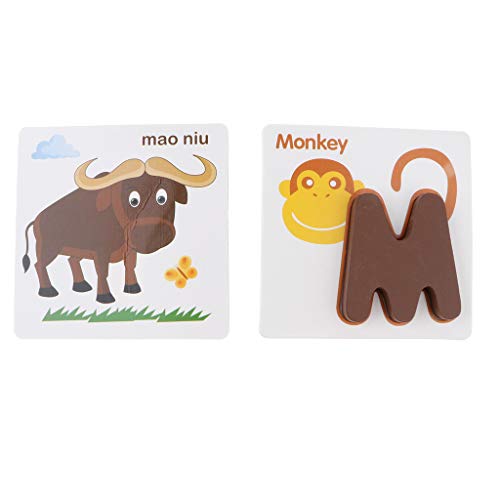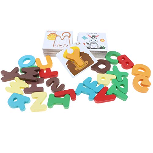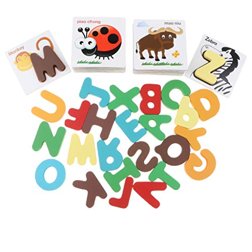 B Blesiya 動物 カード アルファベット 知育 玩具 幼児 子供 教育 教材 木のおもちゃ 52個