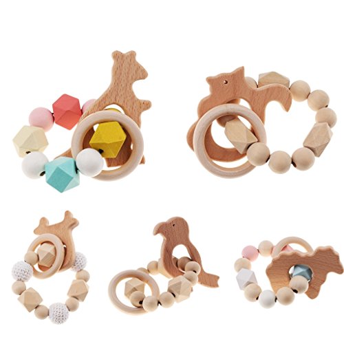 B Blesiya ベビー用 歯固め 授乳ジュエリー 歯がため 木製 ブレスレット リング 出産祝い おもちゃ 全5種類 - 牛