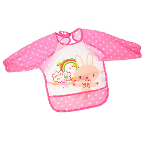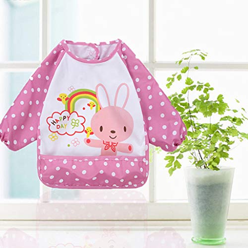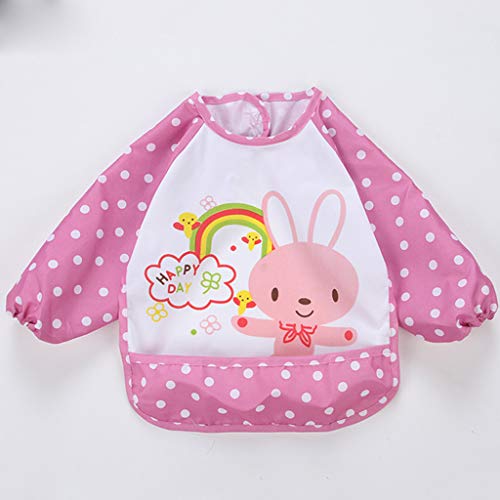 B Blesiya 子供 食事用 芸術 スモック 防水 アーティスト ペイント エプロン 長袖 ピンク ウサギ