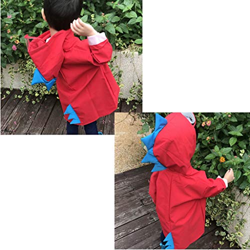 B Blesiya 全2色4サイズ 子供用 キッズ 恐竜の形 レインコート レインウェア 雨具 通園 通学 - 赤, XXL