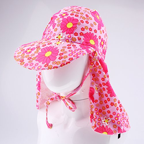 B Blesiya ベビー 水着用帽子 水泳帽子 日よけ帽子 サンハット つば広 夏 男の子 女の子 uvカット 紫外線対策 全10種類 - ピンクの花