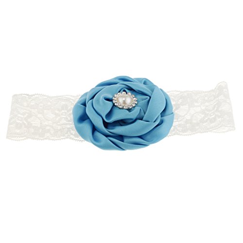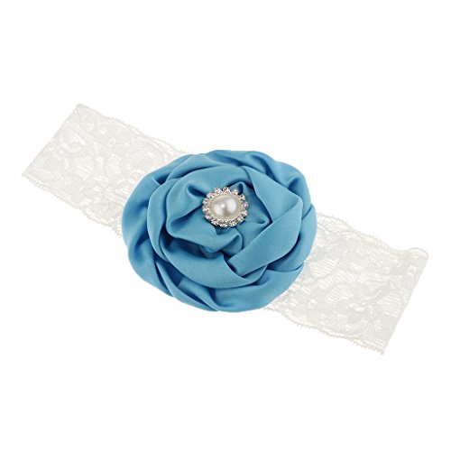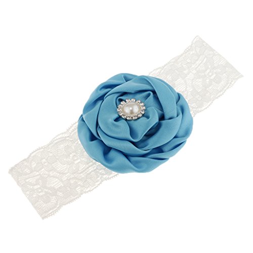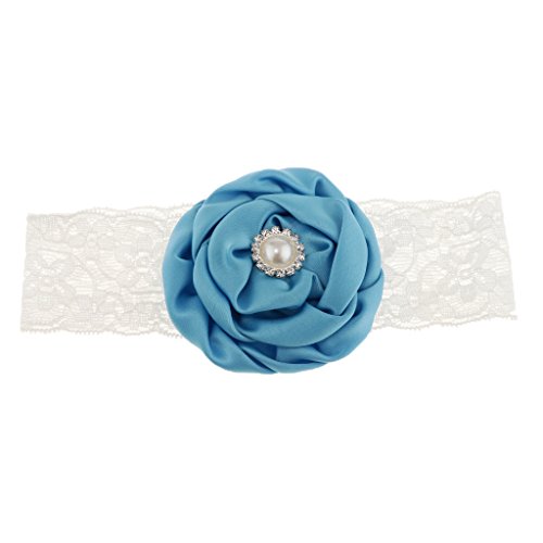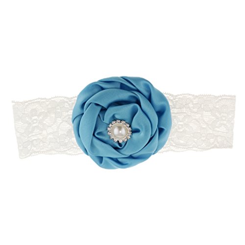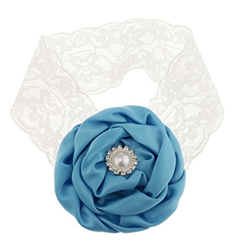 B Blesiya 新生児 赤ちゃん レース 花 弾性 ヘアバンド ヘッドバンド ヘアアクセサリ 女の子 白と青 かわいい