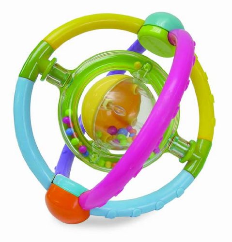 External sphere folds for hand- held rattling.Textured frames stimulate the sense of touch.Bright colorful, and easy to hold.8 ounces. 7 x 6.9 x 3.6 inches