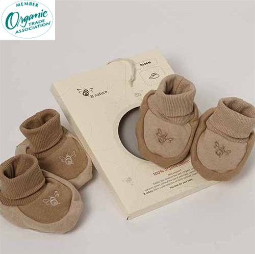 アトピーの子も安心 100%オーガニックコットン:ブーティーソックス チェスナット 2足セット (0-3か月)