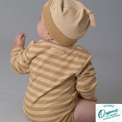 【オーガニック】【ベビー】100%オーガニックコットン:長袖ロンパース チェスットストライプ (6-12か月)