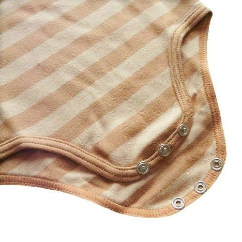 【アトピー】【引っ掻き】【ベビー】100%オーガニックコットン:手袋付き長袖ロンパス チェスナットストライプ (0-3か月)