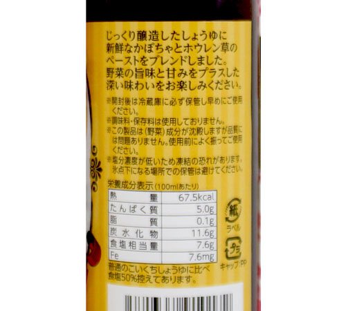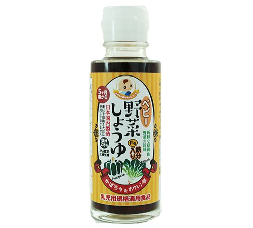 安心・安全のお子様の為のだし醤油!! じっくり醸造したしょうゆに新鮮なかぶちゃとホウレン草のペーストをブレンドしました。 鉄分入りの減塩タイプです。野菜の旨味と甘みをプラスした深い味わいを、小さなお子様はもちろんご年配の方まで、家族皆様でお楽しみ下さい。 (乳児食品・幼児食品なら、もぐもぐ赤ちゃんへ!B&DJAPAN ,MOGUMOGU,BABY)
