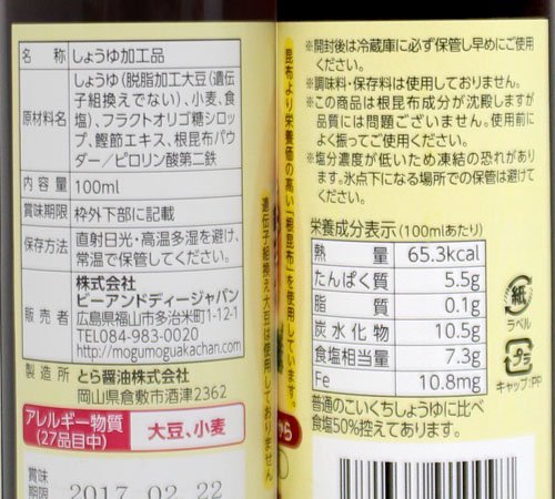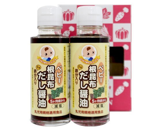 安心・安全のお子様の為のだし醤油!! 昆布より栄養価の高い「根昆布」が入っただし醤油です。 鉄分入りで、濃い口醤油に比べて塩分を50%抑えた減塩タイプですので、小さなお子様はもちろんご年配の方まで、年齢を問わずご家族皆様で安心してお召し上がりいただけます。 (乳児食品・幼児食品なら、もぐもぐ赤ちゃんへ!B&DJAPAN ,MOGUMOGU,BABY)