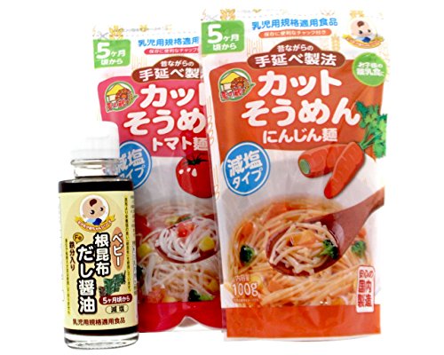 安心・安全のお子様の為のだし醤油に届いてすぐに作れるカットそうめんをセットにしたお得なセットです♪昆布より栄養価の高い「根昆布」が入っただし醤油は鉄分入りで、濃い口醤油に比べて塩分を50%抑えた減塩タイプですので、小さなお子様はもちろんご年配の方まで、年齢を問わずご家族皆様で安心してお召し上がりいただけます。 (乳児食品・幼児食品なら、もぐもぐ赤ちゃんへ!B&DJAPAN ,MOGUMOGU,BABY)