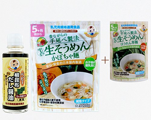 かんたん手作り♪お得なお試しセット(合計1922円→1382円)届いてすぐに作れます。ベビー根昆布だし醤油+生そうめん(かぼちゃ)ご購入で+生そうめん(ほうれん草)1袋プレゼント(