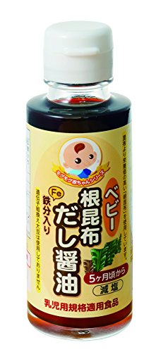 安心・安全のお子様の為のだし醤油!! 昆布より栄養価の高い「根昆布」が入っただし醤油です。 鉄分入りで、濃い口醤油に比べて塩分を50%抑えた減塩タイプですので、小さなお子様はもちろんご年配の方まで、年齢を問わずご家族皆様で安心してお召し上がりいただけます。 (乳児食品・幼児食品なら、もぐもぐ赤ちゃんへ!B&DJAPAN ,MOGUMOGU,BABY)