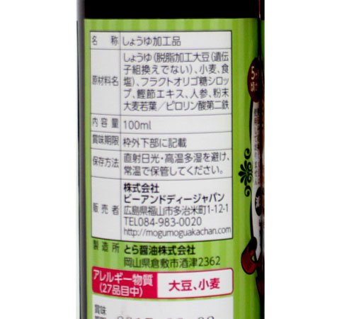安心・安全のお子様の為のだし醤油!! じっくり醸造したしょうゆに栄養豊富な大麦若葉の粉末とにんじんのペーストをブレンドしました。 鉄分入りの減塩タイプです。野菜の旨味をプラスした深い味わいを、小さなお子様はもちろんご年配の方まで、家族皆様でお楽しみ下さい。 (乳児食品・幼児食品なら、もぐもぐ赤ちゃんへ!B&DJAPAN ,MOGUMOGU,BABY)