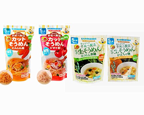 手延べ カットそうめん(トマト麺/にんじん麺)2種:生そうめん(かぼちゃ麺/ほうれんそう麺)2種