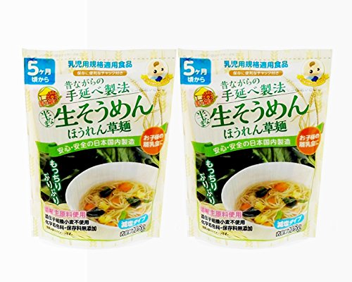 ★数量限定(賞味期限2017.10月のため1338円→1122円)2袋セット 無添加・手延べ /半なま 生そうめん(ほうれんそう麺)(1袋135g):モグモグ赤ちゃん