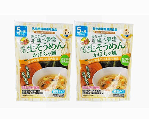 ★数量限定(賞味期限2017.10月のため1338円→1122円)2袋セット/無添加・手延べ 半なま 生そうめん(かぼちゃ麺)(135g)×2袋:モグモグ赤ちゃん