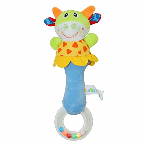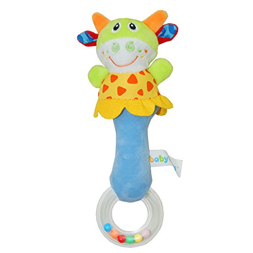 B-PING ベビー 赤ちゃん 用 スティック ガラガラ おもちゃ ホルダー 付き ふわふわ 布 歯固め 魔法のラトル 産院から帰ったその日から泣く子もケロリ 知育 新生児 カラフル (ウシ)