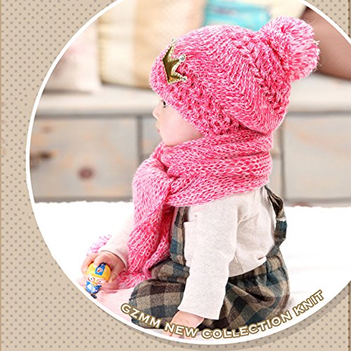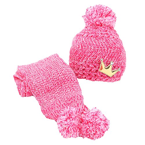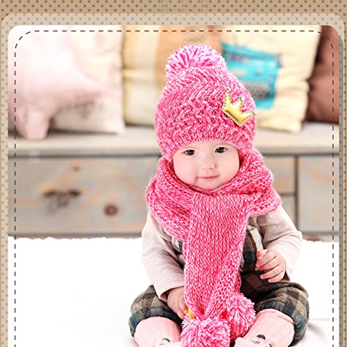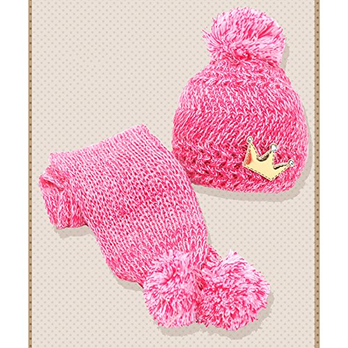 B-PING 赤ちゃん 幼児 子供 服 ギフト 帽子 キャップ かわいい ニット帽 マフラー セット 男の子 女の子 兼用 防寒 防風 アウター ベビー キッズ 王冠モチーフ ラメ混ニット ベビー (ショッキングピンク)