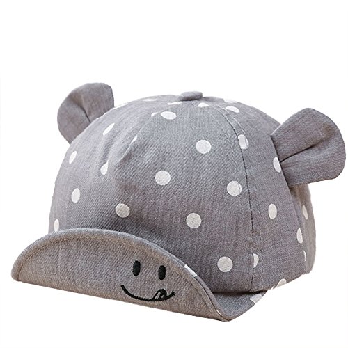 B-PING 帽子 キッズ 男の子 女の子 兼用 サイズ調整 可能 野球帽 ベビー帽子 お耳付き 笑顔柄 水玉 鳥打ち帽子 可愛い帽子 お出かけ (ライトグレー)