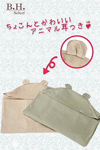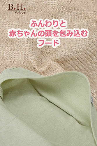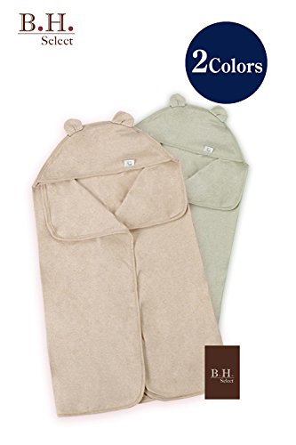 B.H.Select フード付き ベビーバスタオル オーガニックコットン 天然 無添加 安心 かわいい ハンドタオル付 カーキ
