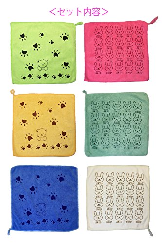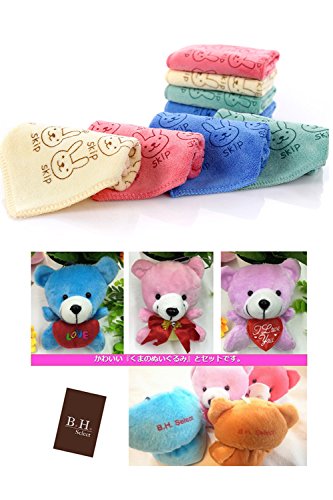 B.H. Select ループ付 ハンドタオル (6枚組) + かわいい ぬいぐるみセット 保育園 幼稚園 の必需品 厚手 ウォッシュタオル
