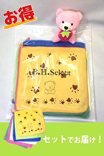 B.H. Select 便利なループ付きハンドタオル6枚セット! 使うときにはしっかり吸水するのに、お洗濯後は乾きが早い、ママに嬉しいハンドタオルです。 保育園や幼稚園にはフックに引っ掛けられるようにループをつけたタオルを持たせるところがほとんどなので、こちらのタオルは取り付けの手間もかからず便利ですね。 毎日使うタオルをかわいい柄の色違いで他の子と差をつけちゃいましょう! 自分の持ち物の見分けをつけるのにも、わかりやすくて安心です。 肌ざわりのやわらかいこちらのタオルは、触り心地のよい素材で安心して毎日お使いいただけます。保育園や幼稚園以外にもご自宅や車内など、さまざまなシーンで使用できます。 毎日の手洗い習慣を付けるためにも、お子さんが喜んで出来るように「今日の好きな色」を選ぶ楽しさから始めましょう♪ B.H. Select 限定のかわいいくまのぬいぐるみをセットにしました。 お友達へのプレゼントにも最適です。