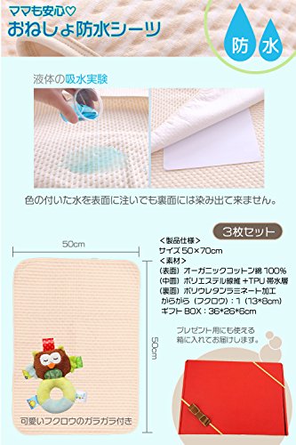 - ★《セット内容》 ・防水おねしょシーツ:3枚 、ガラガラ:1個(布製 13×8cm)、ギフトボックス(36×26×6cm) 製品仕様:50×70cm、素材4重構造:オーガニックコットン綿100%、滑り止め天然竹線維100%、TPUポリウレタンラミネート加工、抗菌、防臭、防ダニ加工