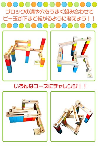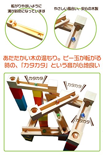B.H. Select 木製 つみき ビー玉 転がし カラフル ブロック パズル スロープ 立体 迷路 知育玩具 つみ木 誕生日 クリスマス プレゼント 問題解決力 論理的思考 を育む (JOY@slopeN 33)
