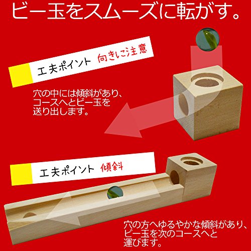 - ★親子で遊ぶ!一緒に転がる方法を試行錯誤し、考えてコースを組み立てる。組み立て途中で積み木がドミノのように崩れることや、ビー玉が途中で止まってしまったりも楽しさの一つ。何度もトライ・失敗を重ねて完成させる。ビー玉がスタートからゴールまで転がったら、思わず「おーっ!」と声をあげたくなるほどの達成感!お子さんだけでなく大人まで驚くほどの集中力で夢中になって遊べます。それってものすごく大切な楽しい時間♪