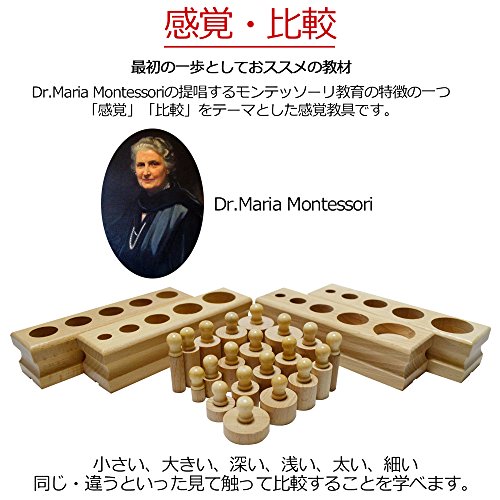 - ★Dr.Maria Montessoriの提唱するモンテッソーリ教育の特徴の一つ、「感覚」・「比較」をテーマとした感覚教具です。モンテッソーリならではな特徴を感じられる、最初の一歩としておススメの教材です。小さい、大きい、深い、浅い、太い、細い、同じ・違うといった見て触って比較することを学べます。