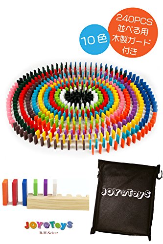 B.H. Select 木製 ドミノ 倒し カラフル つみき 知育玩具 誕生日 クリスマス プレゼント ギフト 入学祝 カラフル ドミノ240個 ならべ棒 1本 おかたづけ袋 セット お子さまの想像力 集中力 を育む (JOY@Domino240) BH105-2
