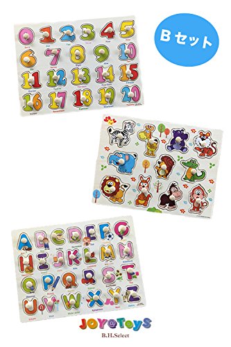 B.H. Select 型あわせ パズル JOY@Shape Puzzle 3枚セット 数字 アルファベット 野菜 くだもの 動物 のりもの パズル かたはめ 木のおもちゃ 知育玩具 図形認識力 を育む (Bセット(数字・アルファベット) BH104-2