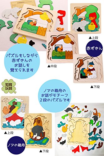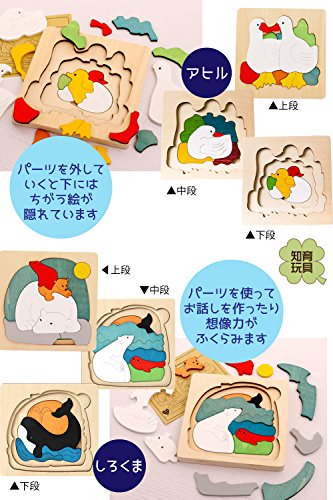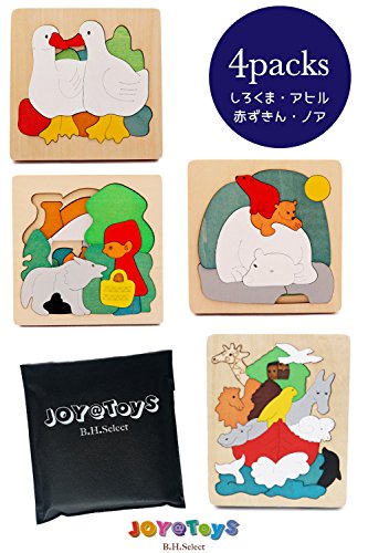 B.H. Select 木製 多層 パズル 知育玩具 幼児向け 型合わせ つみき ブロック 誕生日 クリスマス プレゼント ギフト 入学祝 自由な発想・想像力を育む JOY@Multilayer puzzle (Iセット:しろくま+あひる+赤ずきん+ノア)