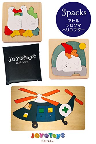 B.H. Select 木製 多層 パズル 知育玩具 幼児向け 型合わせ つみき ブロック 誕生日 クリスマス プレゼント ギフト 入学祝 自由な発想・想像力を育む JOY@Multilayer puzzle (Gセット:しろくま+アヒル+ヘリコプター)
