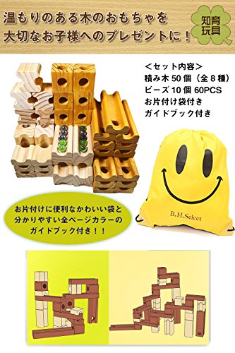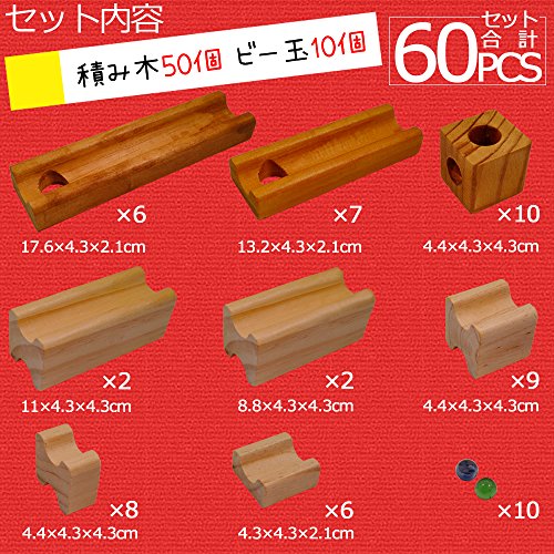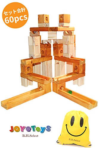 木製 積み木 ビー玉 転がし スロープおもちゃ ビーズコースター ブロック パズル 収納 袋付き 立体 迷路 知育玩具 誕生日 プレゼント 問題解決力 論理的思考 を育む (60pcs (JOY@slope60))