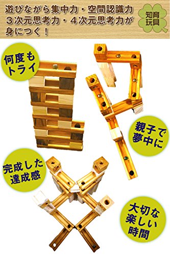 - 遊びながら集中力・空間認識力・三次元思考・四次元思考が身につく!ブロックを組み合わせると、表からは見えない道も作ることができます。積み木のコースをビー玉がどう動くのかを予想して道を作る必要があり、試す・失敗を重ねることで、子どもの空間認識能力や集中力、三次元思考・四次元思考も身につきます。三次元思考とは真正面からただ見るのではなく横から見たり後ろに回ってみたり角度を変えて見てみたり奥行きや高さがあることに気づくき観察力が身に付きます。四次元思考とは三次元思考に時間軸を加えた思考習慣のこと。全体を把握してビー玉がゴールするにはどうしたら良いのか、このおもちゃを通して過去・現在・未来を考える習慣が遊びながら自然に身に付きます。